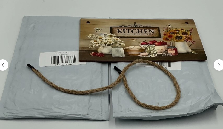 The product is a set of two hanging signs, specifically model C75600. These signs are designed to add a decorative touch to a home or garden by displaying a message or design. The hanging feature allows them to be easily displayed on a wall or door, making them a versatile and eye-catching addition to any space.