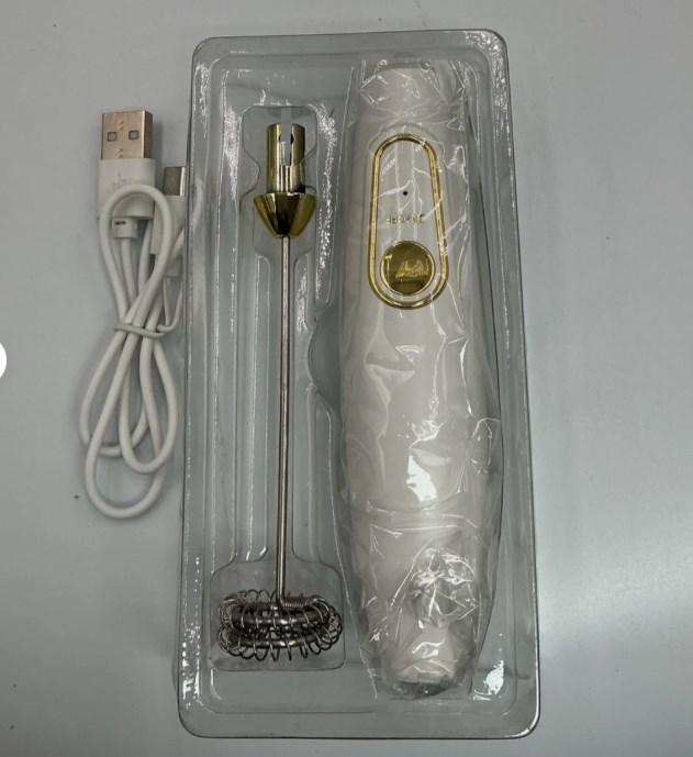 The milk frother is a small kitchen appliance that operates on battery power. This device is specifically designed for frothing milk or other substances to create a creamy and airy texture for various beverages or recipes. Its compact size and portable nature make it convenient for use in home kitchens, coffee shops, or bars. With the convenience of being battery-operated, the milk frother provides a quick and easy way to achieve the desired consistency of foam without the need for a power outlet.