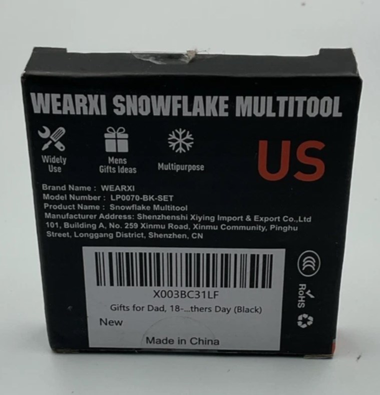 The 18 in 1 snowflake multi tool by Wearxi is a versatile and compact tool designed for outdoor enthusiasts. With its snowflake design, this multi-tool provides 18 different functions in one convenient tool, making it perfect for camping, hiking, and other outdoor activities. Its durable construction ensures long-lasting use, while the ergonomic design allows for easy handling and use. Whether you need to cut, screw, fish, or hunt, this multi-tool has you covered in one sleek and stylish package.