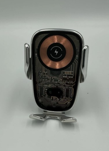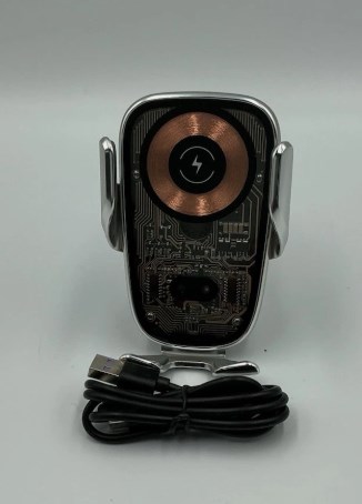 The product is a car phone holder with a built-in wireless charger, making it convenient to charge your phone while on the go. The phone holder securely mounts your device for easy viewing and use, while the wireless connectivity allows for easy charging without the hassle of cords. This product combines functionality with a sleek design, providing a practical solution for powering your phone while driving.