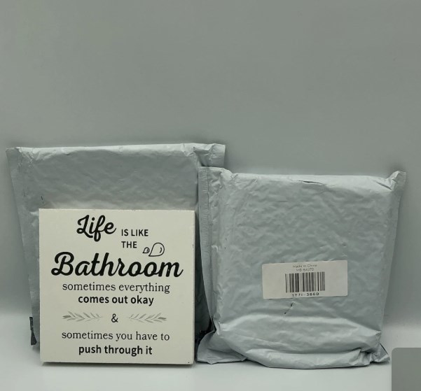 The 2 Pc Funny Bathroom Quote MB54370 is a set of signs designed specifically for the bathroom. The signs feature a humorous quote that adds a playful touch to the room. With a model number of MB54370, these signs are perfect for adding a touch of personality to your bathroom decor. The quotes on the signs can also serve as a playful reminder to the importance of maintaining cleanliness in the bathroom.