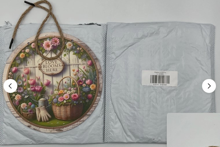 The 2 Pc Love Blooms Here Hanging Sign C10499 is a charming and decorative piece perfect for any home. Made of high-quality materials, this sign features a beautiful design that will add a touch of romance to any living space. The two-piece design allows for easy hanging and creates a cohesive look when displayed together. Whether for everyday decoration or special occasions, this sign is sure to bring a warm and inviting feel to your home.